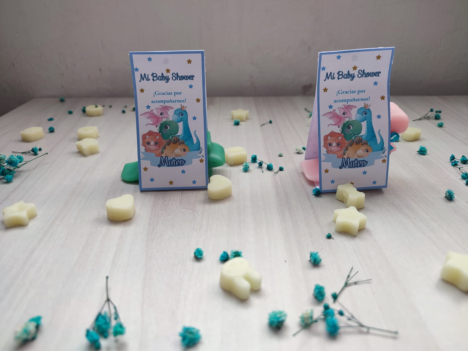 Dinosaurios gota aromatizados y personalizados. Tu eliges: colores, aroma, mensaje e imagen del empaque.