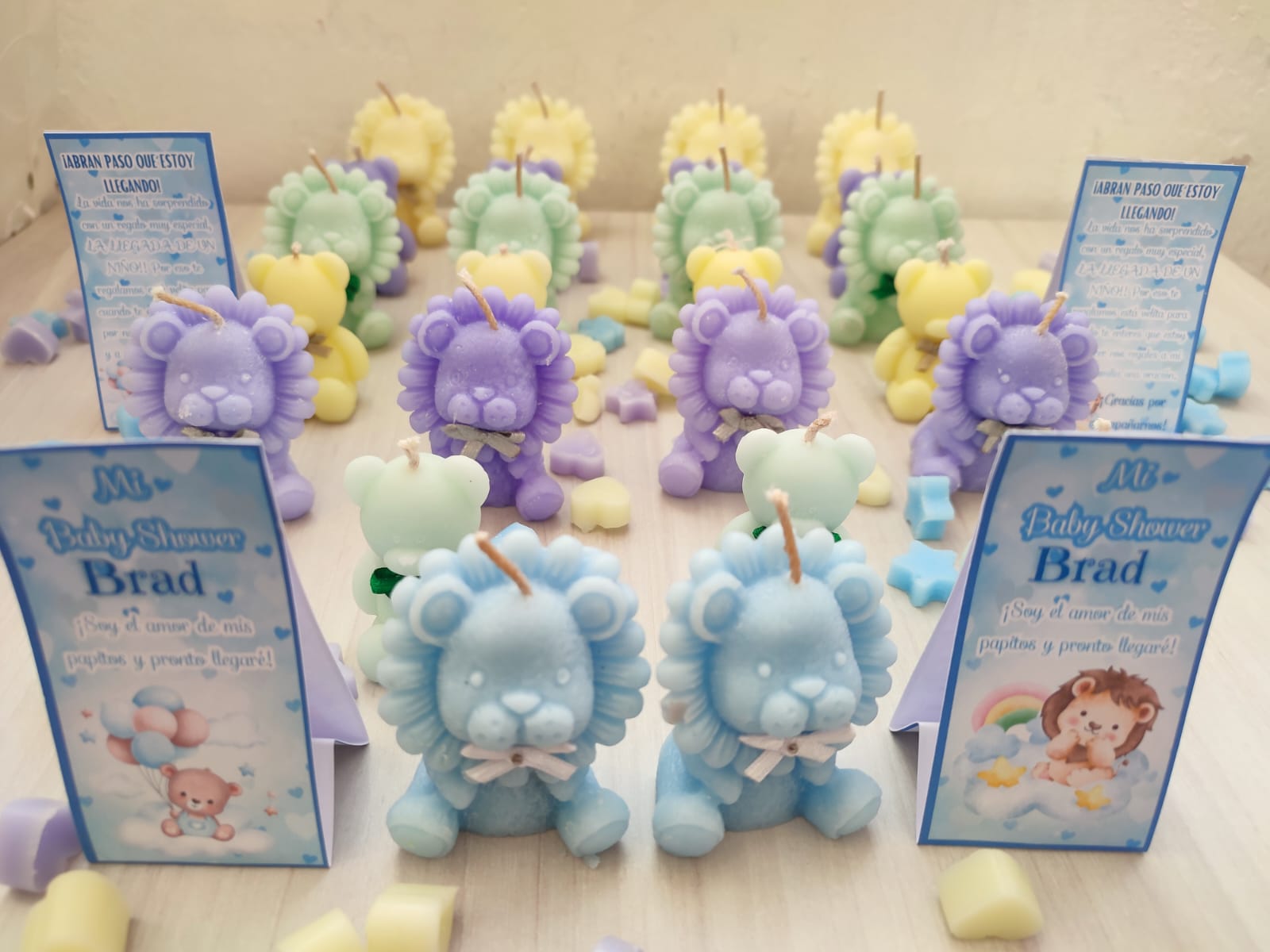 Leones gota aromatizados, personalizados y carita pintada. Tu eliges: colores, aroma, mensaje e imagen del empaque.